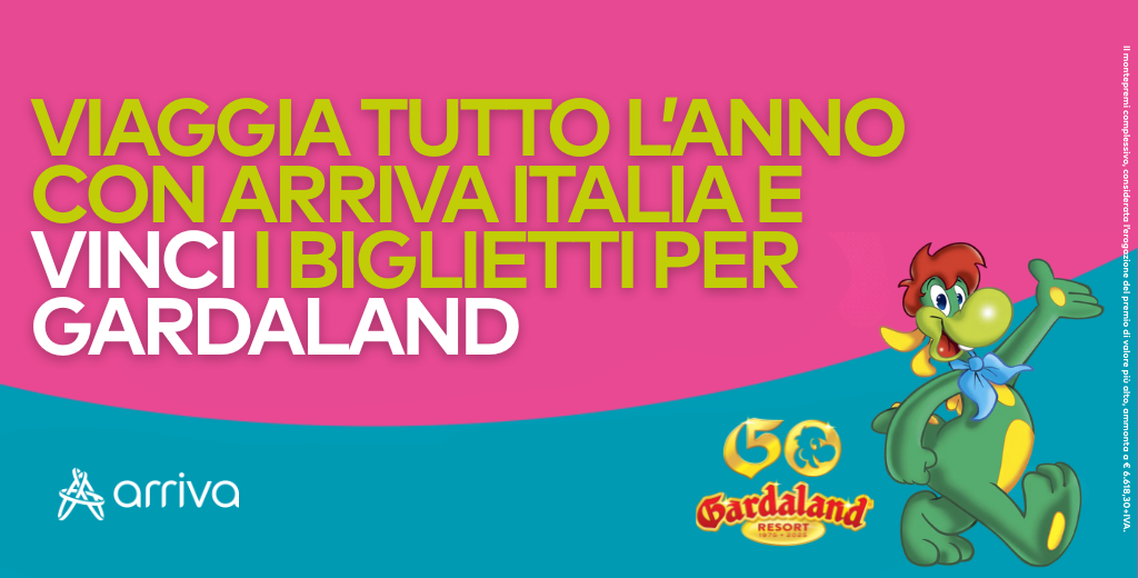 Da quest’anno c’è una grande novità: acquistando un abbonamento annuale studenti online (app Arriva MyPay o Portale), dal 27 agosto al 21 settembre 2025 parteciperai automaticamente al concorso per vincere 2 biglietti d’ingresso a Gardaland Park per la stagione 2026!